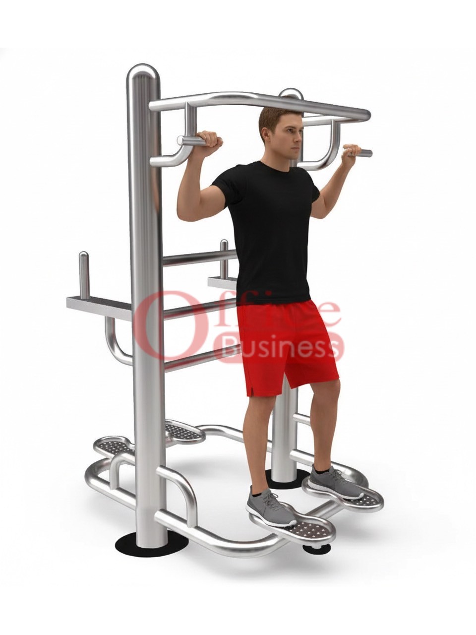 เครื่องบริหารบาร์โหนตั้งพื้น แบบสแตนเลส 4 นิ้ว หนา 3 มม. พร้อมปูแผ่นยางพารา (มอก.)