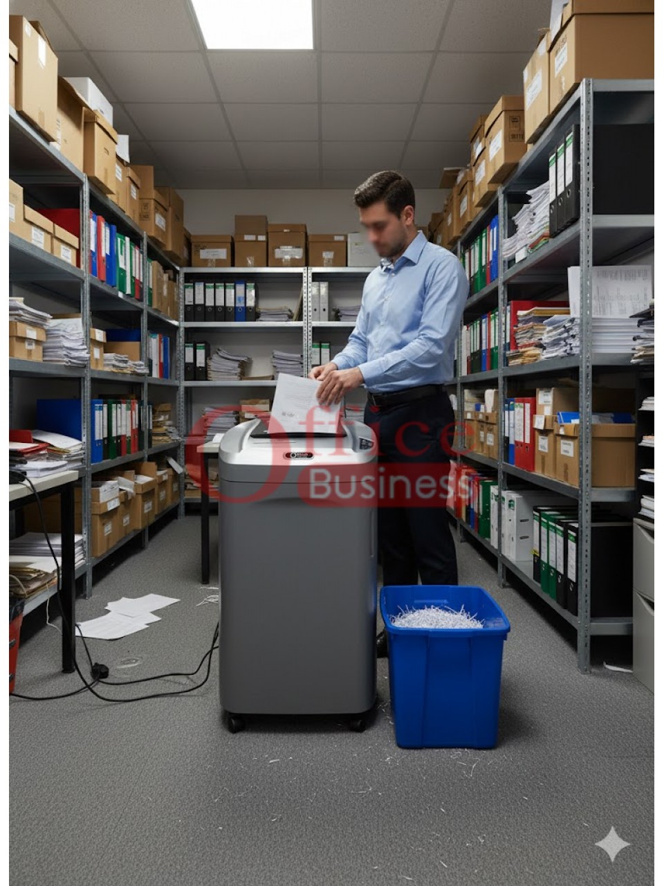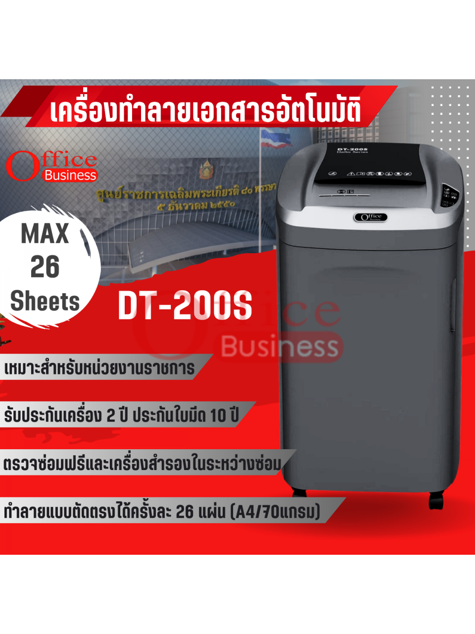 เครื่องทำลายเอกสารแบบตัดเส้นตรง ทำลายครั้งละ 26 แผ่น (A4) ยี่ห้อ OFFICE BUSINESS รุ่น 200S (3.9มม.) ประกันเครื่อง 2 ปี ใบมีด 10 ปี บริการหลังการขาย (On-site)